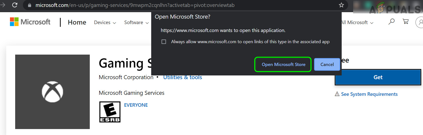 - Upon restart, launch a web browser and steer to the following Gaming Services page of the Microsoft Store: