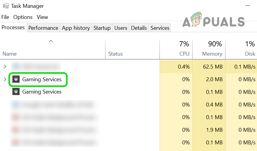 End Gaming Services Process in the Task Manager - If so, right-click on one of the processes and select End Task.