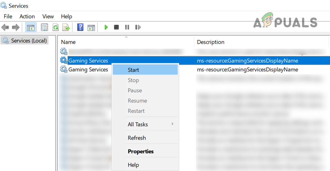 - Then repeat the same for all other Gaming Services and afterward, start all the entries of the Gaming Services in the Services manager (usually, two).
