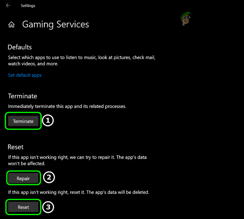 Terminate, Repair, and Reset the Gaming Services - Now confirm to Reset the Gaming Services to defaults and then check if the MS Flight Simulator can be installed from MS-Store.