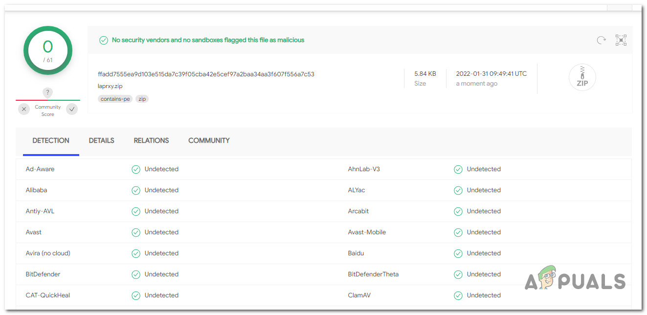 - Once the file has been successfully downloaded, unpack it and upload it to a directory like VirusTotal to confirm that it is malware-free.