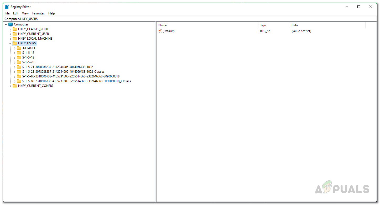 Opening up Windows Registry - Now, in the Windows Registry window, expand the HKEY_USERS list.