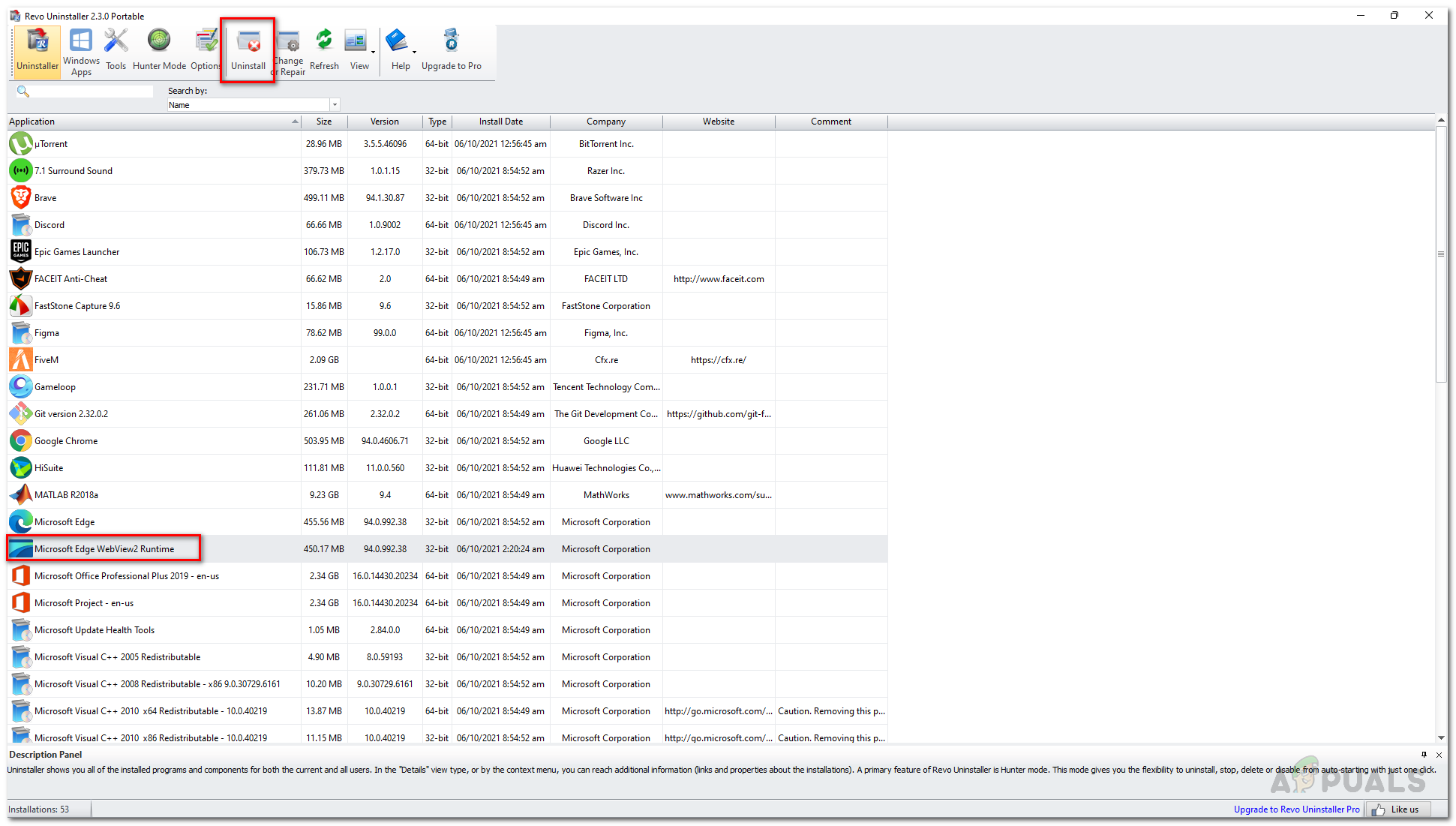 Finally, if you wish to completely get rid of Microsoft Edge WebView2 and the annoying processes that run in the background, you can do so by simply uninstalling it from your computer. The problem here is that you will not be able to uninstall it using the conventional methods of using the Control Panel or the Windows Settings app. In such a scenario, we will be using a third-party utility called Revo Uninstaller which comes with both a Pro and Free plan that you can use to get rid of Microsoft Edge WebView2. To do this, follow the instructions that are given down below: