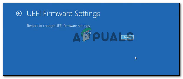 Restarting the computer directly into the UEFI Setup - Next, your computer will boot up directly into the UFI settings. Once you’re finally inside, look around for the Restore menu and choose Restore Default. Keep in mind that the default location and name of this option will vary depending on your type of UEFI and your motherboard manufacturer.