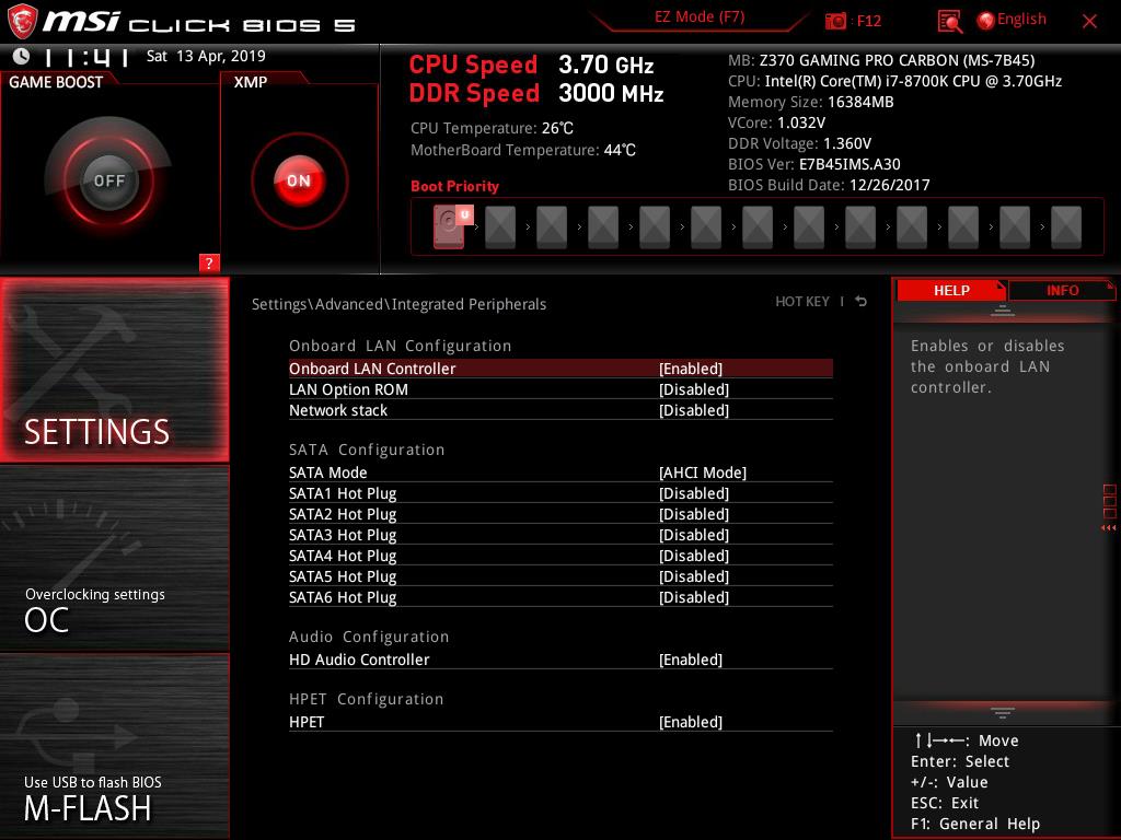 The MSI Z370 Gaming Pro Carbon is using Realtek ALC1220 Codec supporting high definition audio and 2/4/5.1/7.1 channels. It has support for S/PDIF output. The audio section is implemented on two dedicated layered PCBs. Audio Boost 4 is powered by an EMI-shielded High Definition audio processor with built-in DAC, ensuring the purest sound quality in both stereo and surround sound. It has support for 120dB SNR / 32-bit and supports DSD Super Audio CD playback & recording (64x better than regular CD quality). The built-in dedicated headphone amplifier rewards audiophiles with headphones up to 600O impedance by delivering studio-grade sound quality from gaming PC. At the core of its sound technology, the MSI is using Nahimic Sound Technology. The MSI Z370 Gaming Pro Carbon is using Intel NIC with 1219-V LAN controller. This controller is Gigabit rated hence it supports data connectivity speeds of up to 1000 Mbps. There is one LAN port on the rear I/O panel. The MSI Z370 Gaming Pro Carbon is using Click BIOS 5. The BIOS is UEFI AMI one using ACPI 6.0, and SMBIOS 3.0. There is a single 128 Mb flash chip hosting the BIOS. There is no dual BIOS on this motherboard. Multi-language support is available in the BIOS.