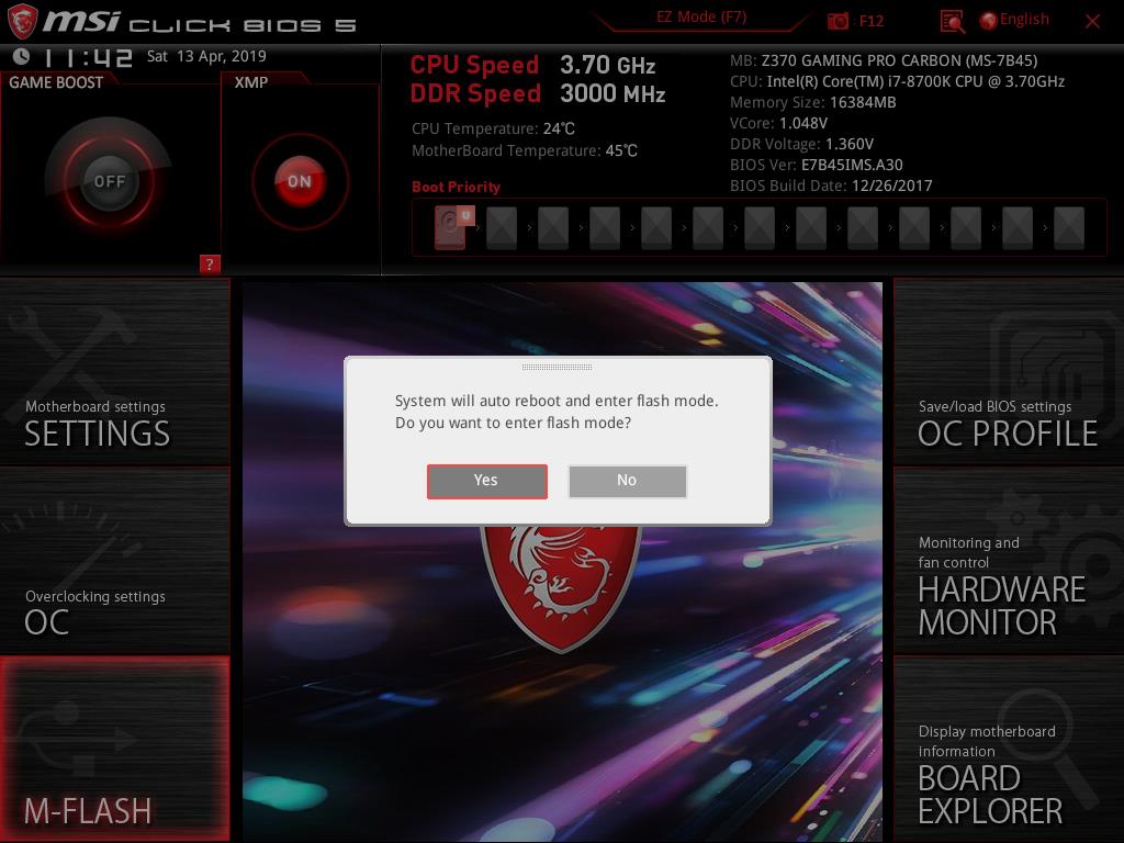 Clicking on the M-Flash button on the main interface will proceed to update the BIOS of the motherboard. We are not suggesting to update the BIOS but only mentioning about this feature in the BIOS as this process is risky and could damage the motherboard in case anything goes wrong. Do it at your own risk!