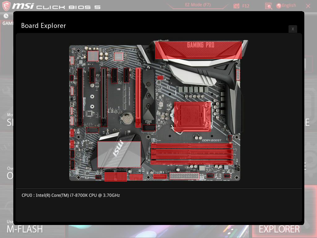 We have already covered the Hardware Monitor above. Let’s explore the Board Explorer feature. Clicking the Board Explorer will load a new interface showing the block diagram of the motherboard with main components highlighted in red. Hovering the mouse on these components would show the description of the component at the bottom like moving the mouse over the CPU socket will show the installed CPU’s information and so on.
