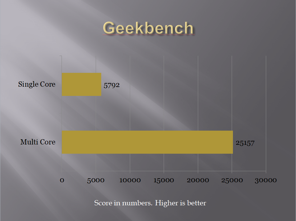 Geekbench 4 measures the system’s performance across multiple platforms. The test build performs well under this test. We have used it to test the single core and multi-core performance of the CPU.