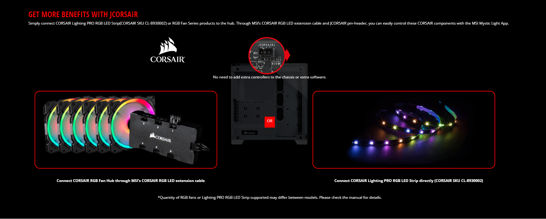 There is a header on the top right side of the motherboard labeled as JCORSAIR1. It has a pin format of +5V DG (3-pin header, addressable RGB) and is used to host a multitude of the Corsair RGB lighting devices like Node Pro, Commander Pro that would allow the user to control and sync those devices using the MSI Mystic Lighting. To make up for this, MSI has bundled their proprietary RGB cable that connects the Corsair devices to the JCORSAIR port. This is something new for me and I appreciate this approach as many peeps have been asking on how to sync the Corsair devices with the motherboard’s lighting solution and I think other manufacturers should take note of this implementation.