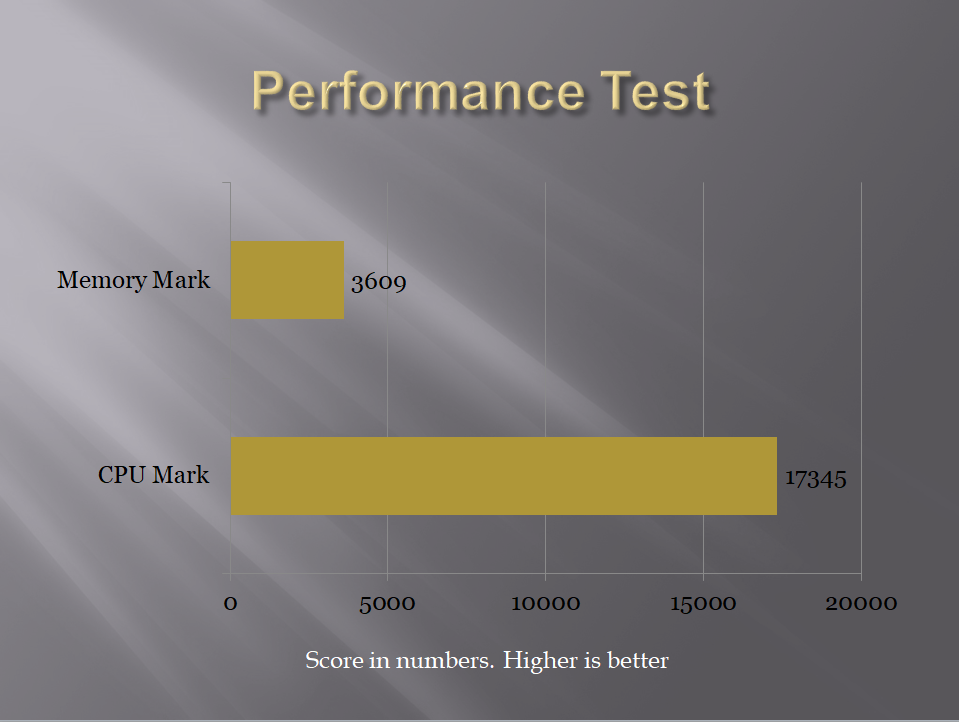 Performance Test or pTest is another comprehensive suite which measures the overall performance of the PC along with detailed tests for each component. I used it to measure the performance of the CPU and the Memory. Scores fall in 95-99% percentile which is a good indication of the performance.