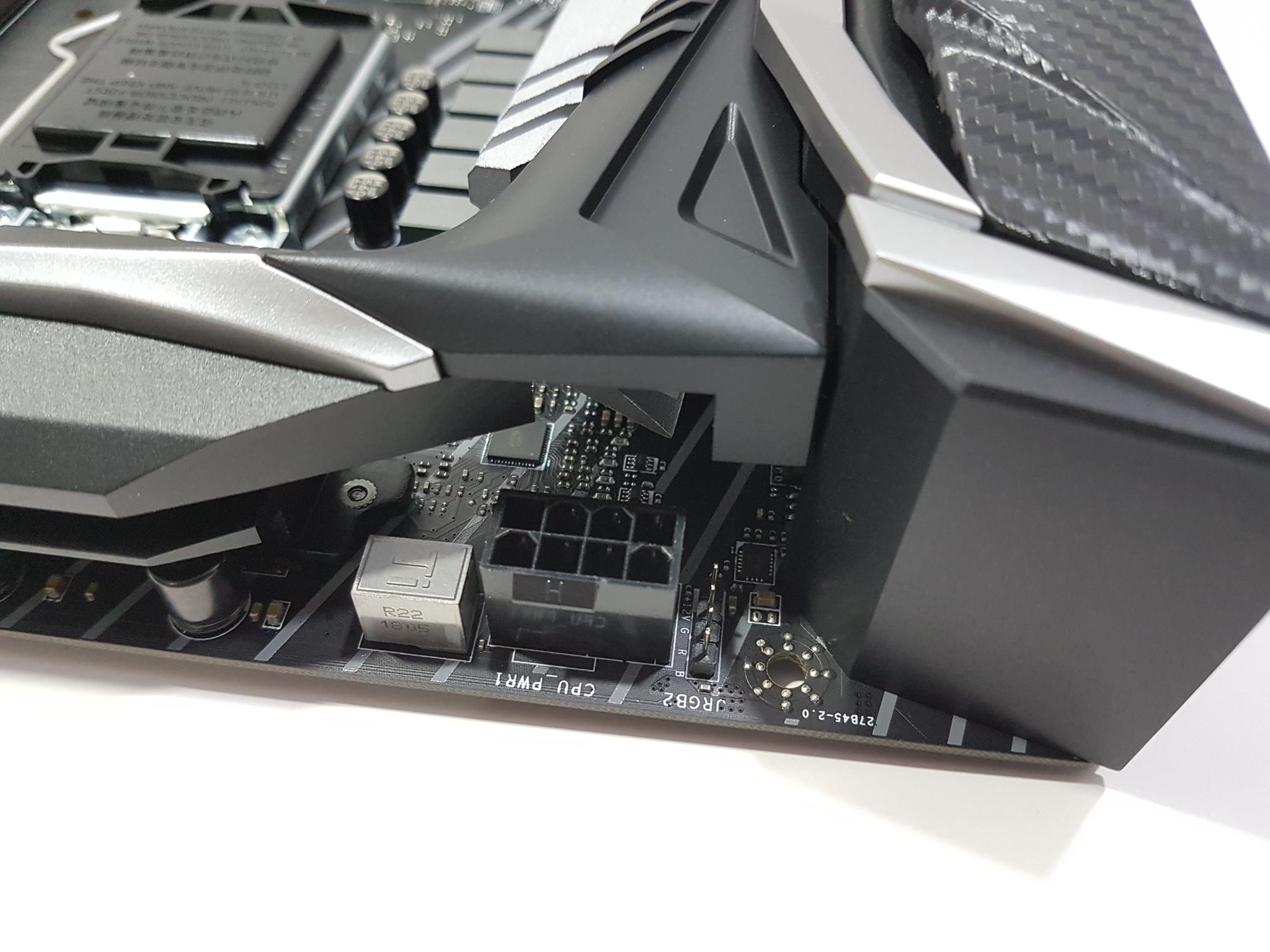 The CPU power connector is located on the top left side which is the standard ATX implementation. There is an RGB connector located before the EPS connector. It is labeled as JRGB2. It has 4 pins and is in +12V GRB pin format (5050 RGB). Keep in mind that this is not an addressable RGB header so take care while plugging in the RGB device. The maximum current rating is 3A with a 2m length of the strip.