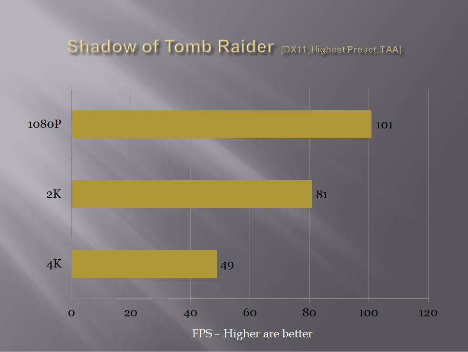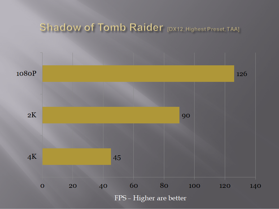 We have tested 4 games on the test build. All the games were tested with their highest graphics settings.