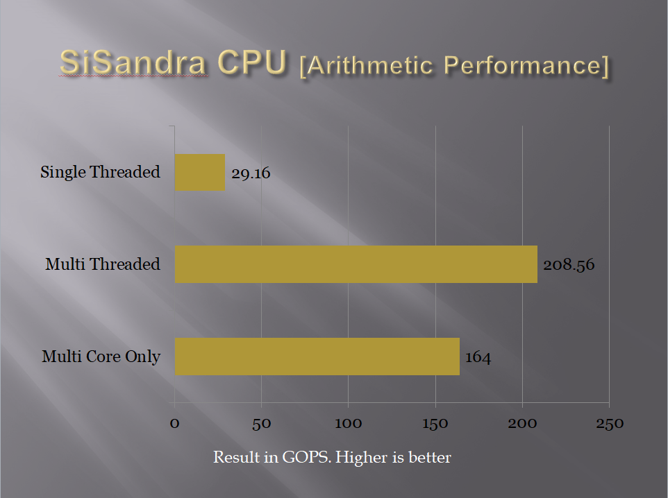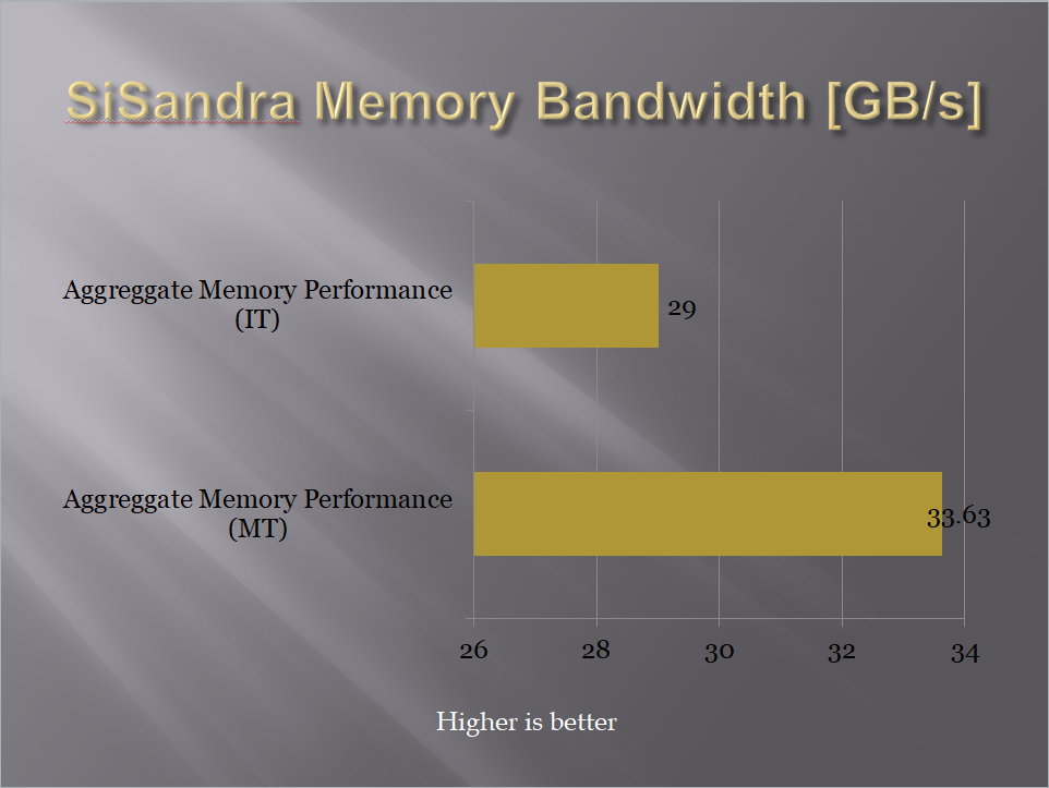 SiSandra is another comprehensive application suite to measure the performance of the various components of the PC and to check for any reported issues with them. It uses a graphical representation as well as the performance measure. We used it for CPU Performance and Memory bandwidth testing.