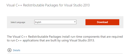 - Visual C++ Redistributable Packages for Visual Studio 2013 32+64 bit