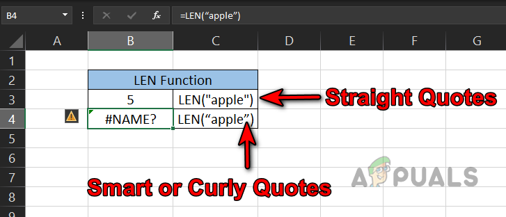 - Missing Quotation Marks: The #name error might occur in Excel if you forgot to put quotation marks around a text string in a formula or have added smart or curly quotes around the Text.