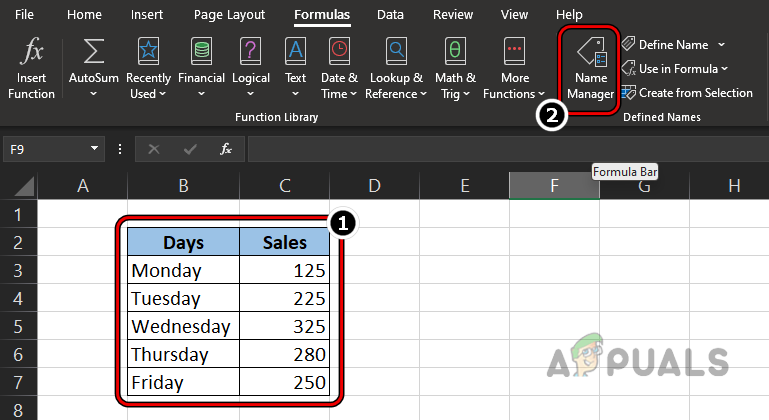 - Head to the Formula tab on the Excel ribbon and click on Name Manager.