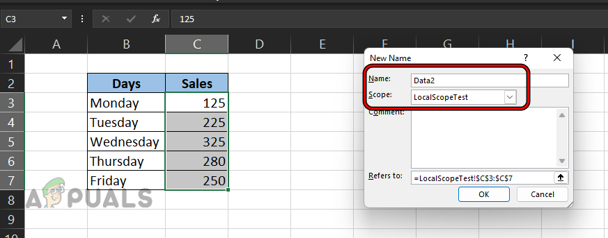 - Create a new worksheet in Excel and enter its name as LocalScopeTest (or any name of your choice).