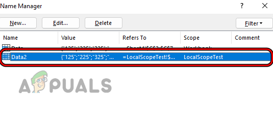 - Now, switch to the LocalScopeTest sheet and open Name Manager.