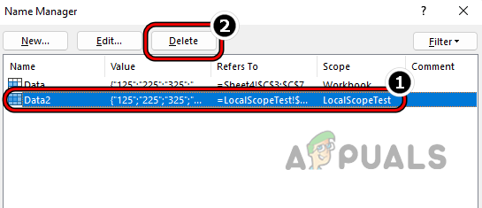 - Then select the Data2 range and click Delete.