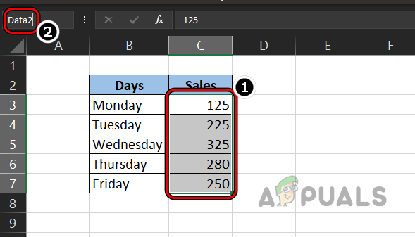 Delete the Data2 Range Name Through the Excel’s Name Manager - Now confirm to delete the range and again, select the C3 to C7 cells.