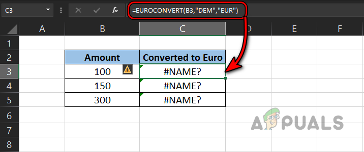 If a particular formula requires an Excel add-in but your Excel does not have that add-in, then that may cause the #name error in Excel. Let us clear this by the following example by using EUROCONVERT:
