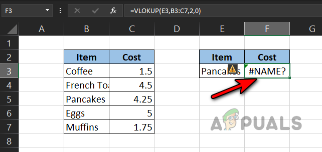 - Refer to the above example and you will notice a #name error in the F2 cell.
