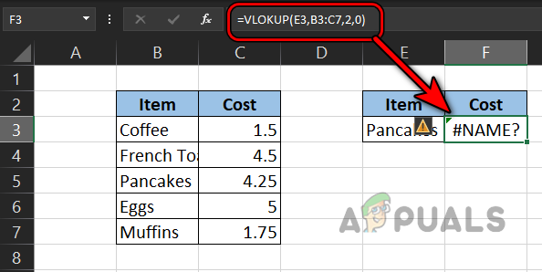 #Name Error Due to a Typo in the VLOOKUP Formula - Now have a look at the sheet below and check the F3 cell in which the formula is modified as the following which cleared the #name error: