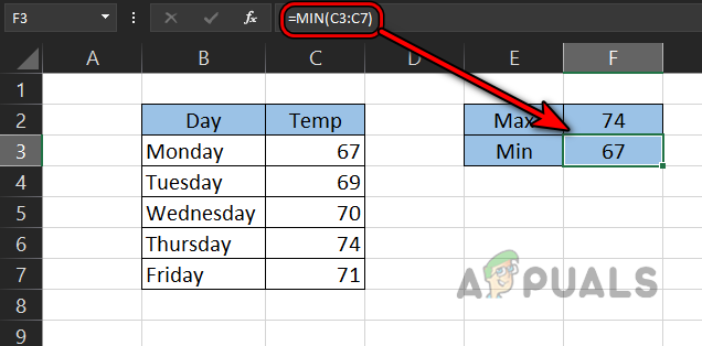 =Min(C3:C7)