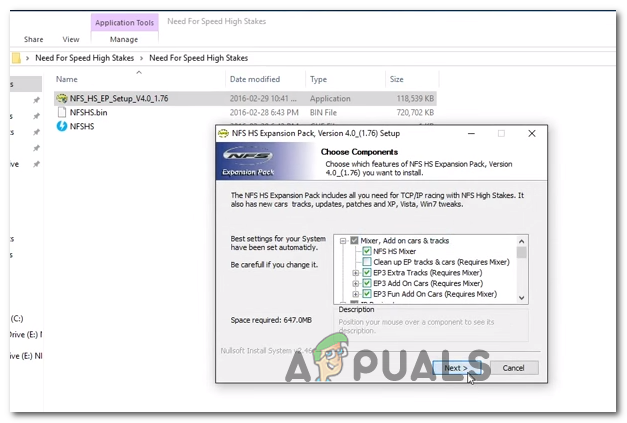 - Now that the installation is complete, open up the Expansion installer (NFS_HS_EP_Setup_V4.0_1.76.exe) and follow the on-screen instructions to install that in the same location where you have previously installed the original game files.