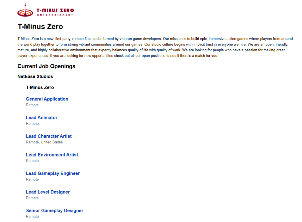 To achieve this, T-Minus Zero has also adopted a flexible remote-working policy, where devs would be given complete freedom and creative space. At the moment of this writing, the studio is still hiring, for the positions of Senior Gameplay Designer, Lead Animator, Lead Gameplay Engineer, Lead Level Designer, Lead Environment Artist, and Lead Character Artist.