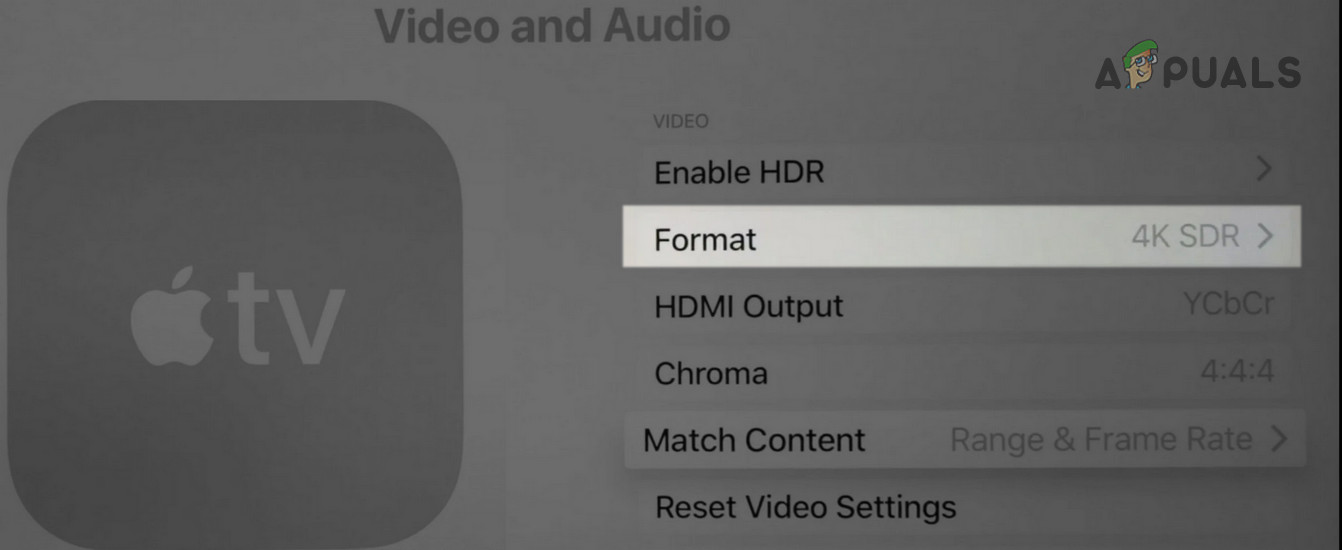 - Navigate to the Video & Audio section in the Settings of the Apple TV & open Format.