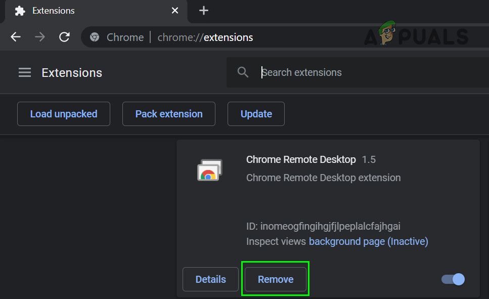 - Now select Manage Extensions & Remove the Chrome Remote Desktop extension.