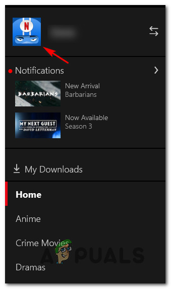 To enforce this particular method, follow the instructions below to switch the active Netflix profile in order to circumvent the apparition of the Download error: