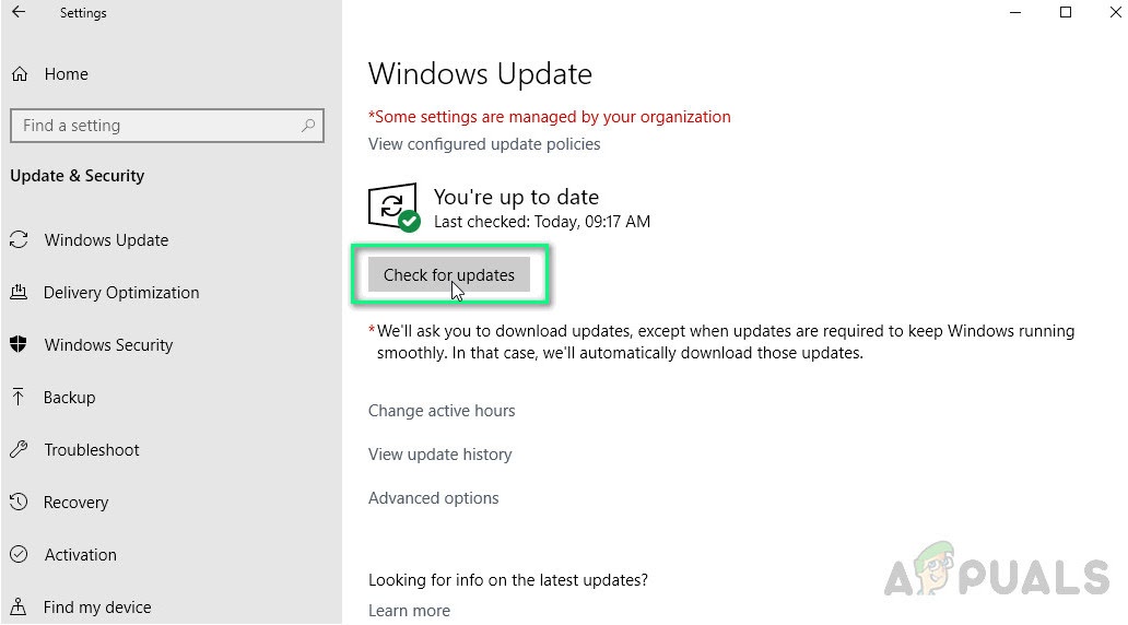 - Once you’re inside the Windows update screen, move over to the right-hand section and click on the Check for Updates button.