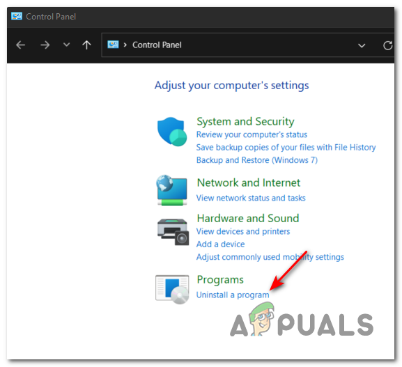 Accessing the Programs and Features screen - Now click on uninstall a program option.