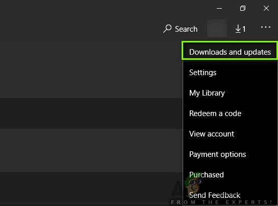 Opening the Microsoft store via Run box - From the insides of the Microsoft Store, click on the action button (top-right corner), then click on the Downloads and Updates tab from the list of available options.