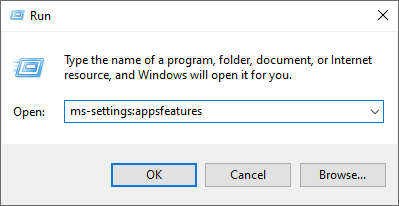 - Open up a Run dialog box by pressing Windows key + R. Next, type “ms-settings:appsfeatures” and press Enter to open up the Apps & Features tab, then scroll down through the list of applications.