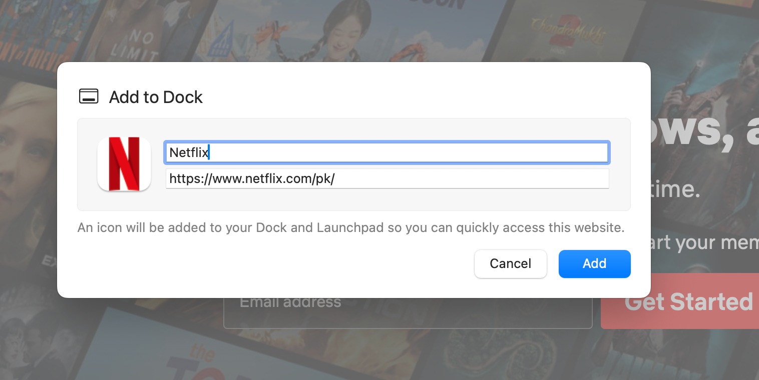 If you own one of the more recent Macs and have the latest macOS Sonoma installed, you can create a Web App for Netflix, which will basically serve as a glorified website shortcut. Here’s how: