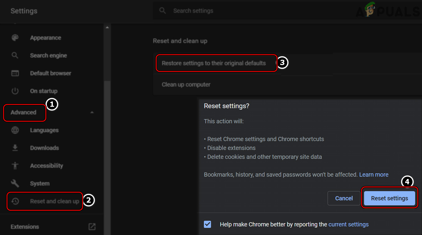 Reset Chrome Settings to Defaults - After resetting, reopen the browser and navigate to Netflix to check if the streaming issue has been resolved.