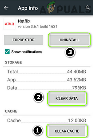 Clear Cache and Data of Netflix and Uninstall it - Confirm to force stop the app, then proceed to Netflix’s Storage.