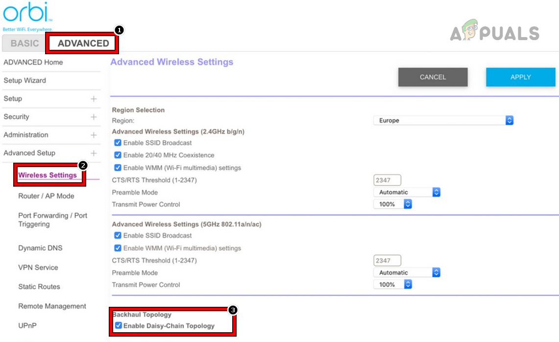 In a mesh network, the Daisy Chain topology permits network nodes to link to the router via another nearby node. However, this can introduce extra lag in the Netflix data packet transmissions and may cause buffering. Disabling Daisy Chain in the router settings could address this issue. We’ll illustrate using an Orbi router’s settings as an example.
