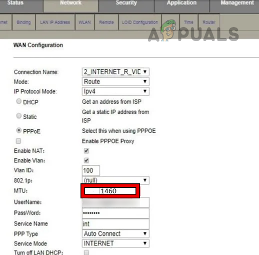- Under the WAN sub-tab, locate WAN Configuration and set the MTU Size to 1460.