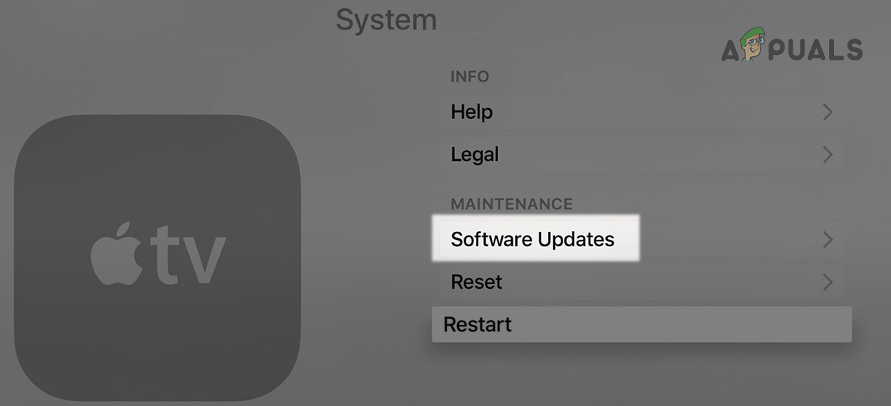 Update Software of the Apple TV - After the update, restart the Apple TV and check if Netflix is functioning properly.