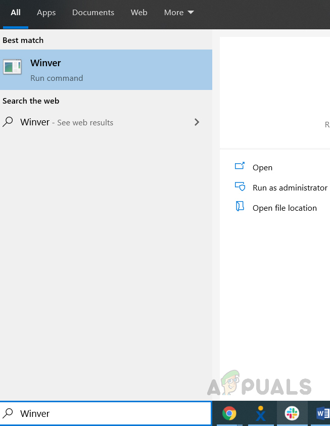 - In the Windows search bar type WINVER and press enter