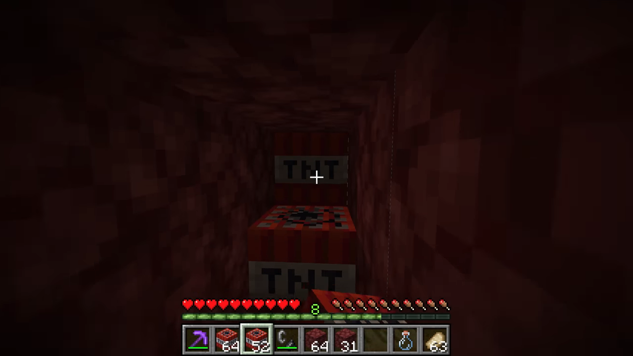 If you don’t have TNT, or want to save it for something else, yet still want to speed up the process, you can resort to bed mining. This process substitutes the TNT for a normal bed that you craft for sleeping. Why a bed? Well, because beds explode in the Nether dimension if you try to sleep in them!