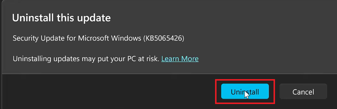 3. Uninstall KB5065426 Windows Update