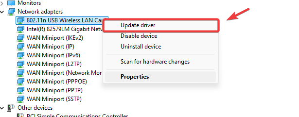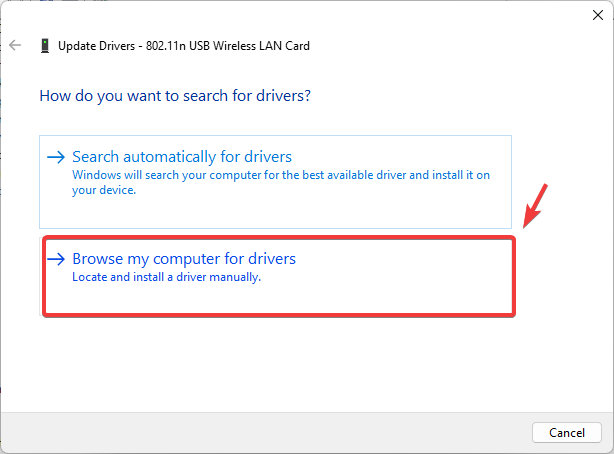 - If no driver is found, right-click the network adapter again, select Update driver, choose Browse my computer for drivers, then Let me pick from a list of available drivers, and install the compatible driver.