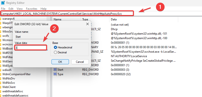 1. Configure WinHttpAutoProxySvc from the Registry Editor