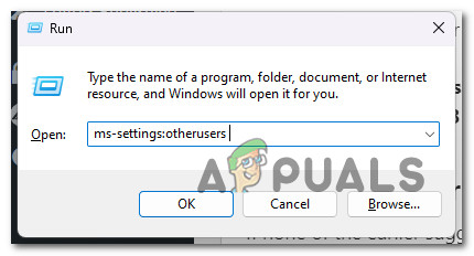 - To access the Family & other persons tab of the Settings app, enter “ms-settings:otherusers” into the text box that just appears and then hit Enter.