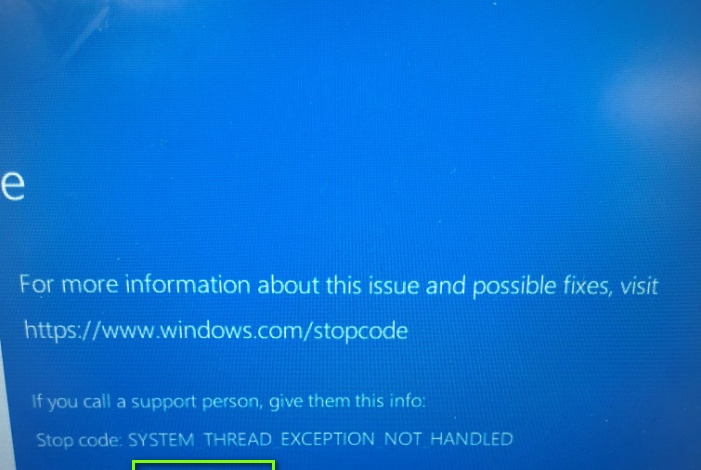 This error message can accompany various stop codes. As an example below, SYSTEM_THREAD_EXCEPTION_NOT_HANDLED is shown. The solutions down below target all the stop codes this error comes.